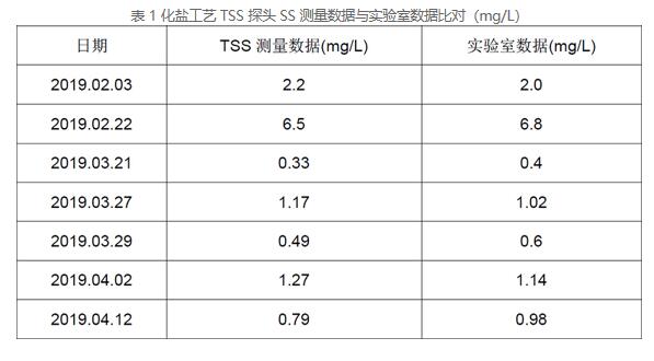 從表 1 來看,7 組 TSS 探頭的測量數(shù)據(jù)與實驗室數(shù)據(jù)的相對誤差均在 20%以內(nèi),能夠滿足客戶工藝控制的要求。